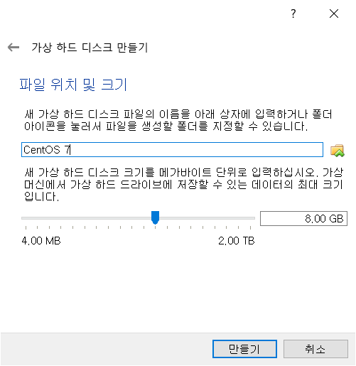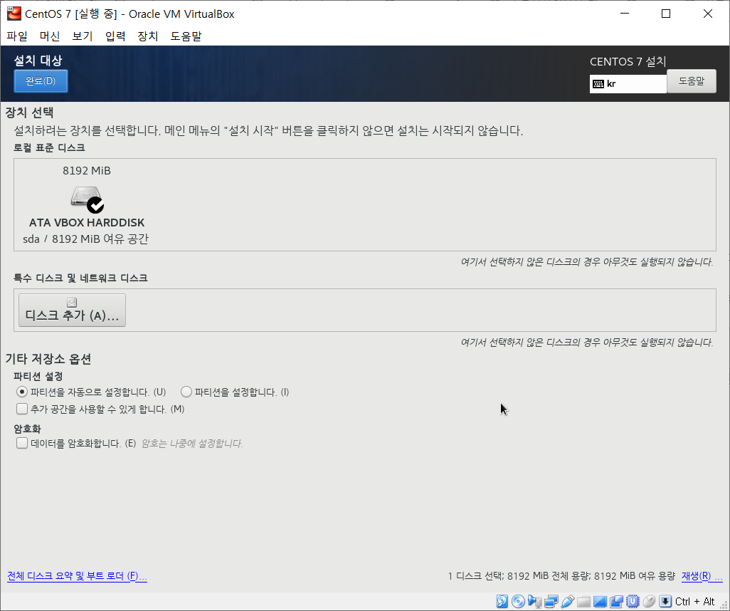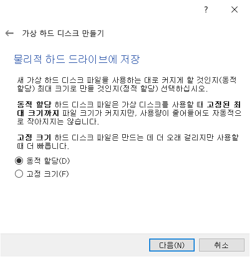 전 오라클도 설치하고 회사제품 등 이것저것 설치할거라서 동적 할당으로 했습니다.