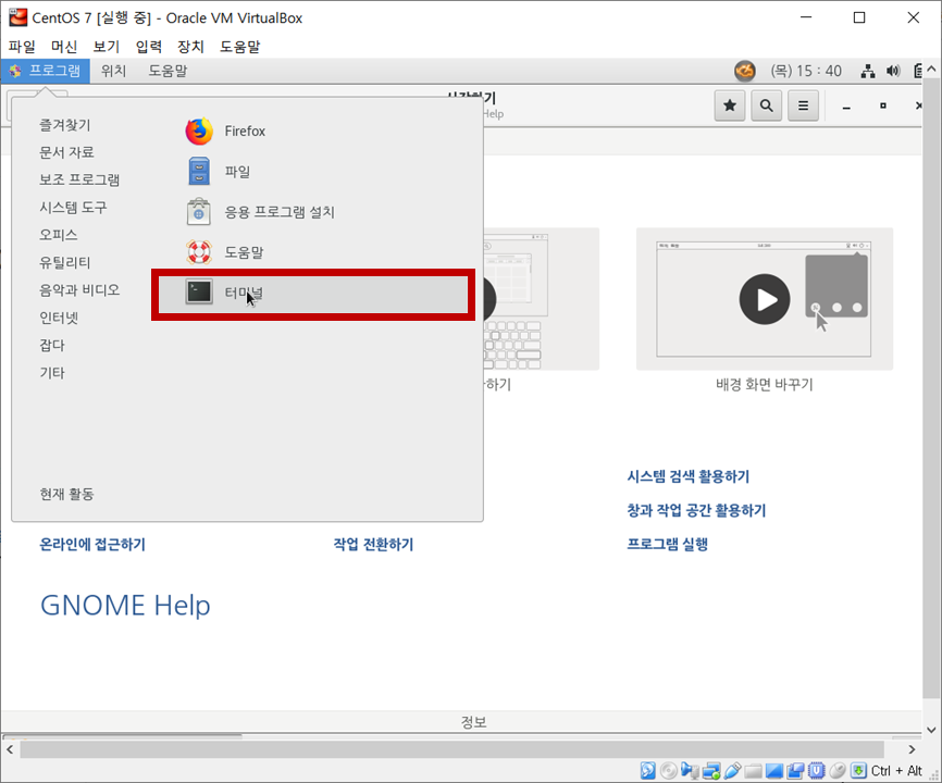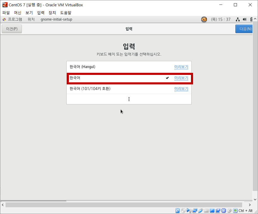 이때 가상머신의 커서를 로컬로 빼려면 [Ctrl]+[Alt] 키를 눌러서 뺄수있습니다.