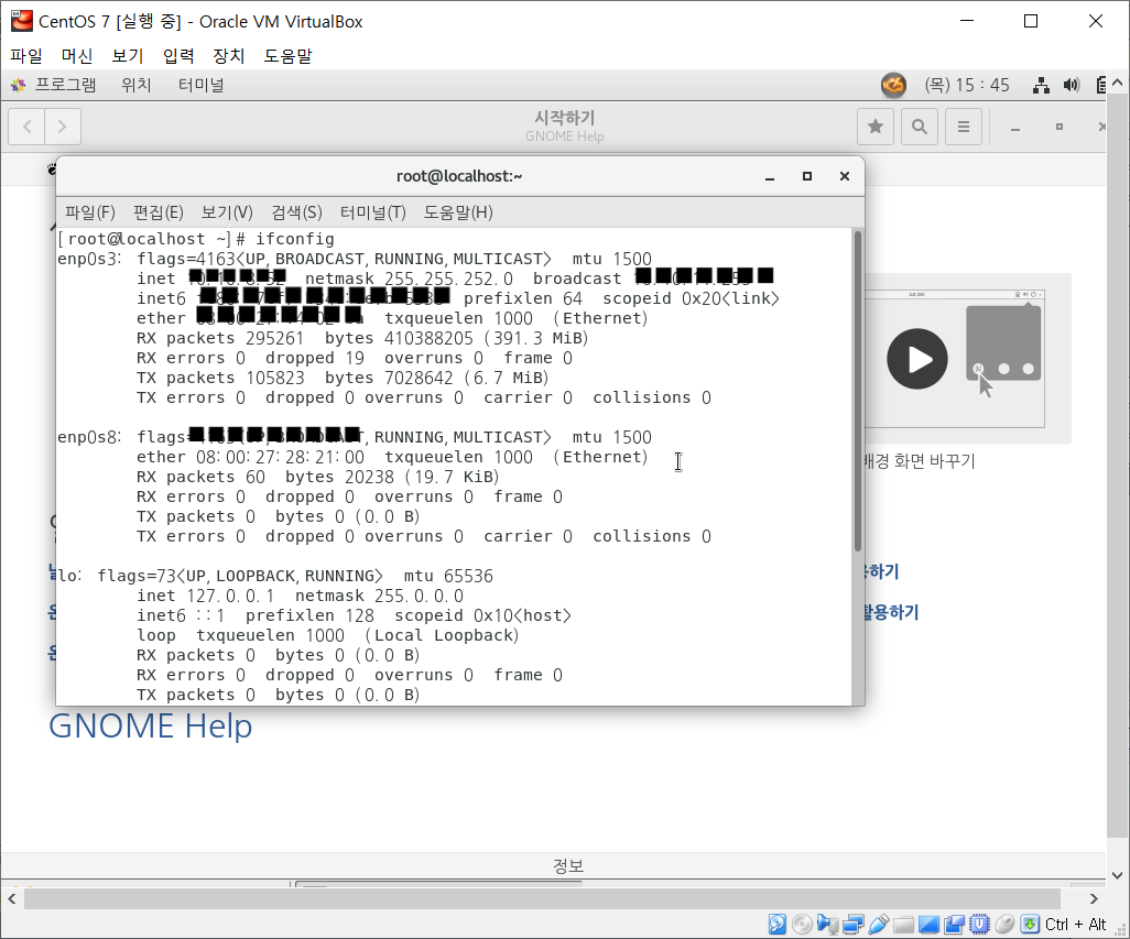 이더넷(enp0s3)을 켭니다. (enp0s8은 무시하세요 아마 안뜰겁니다)