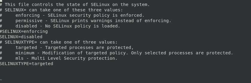 vi /etc/selinux/config 들어가면 SELINUX=enforcing로 되어있는데 이걸 disabled로 바꿔준다