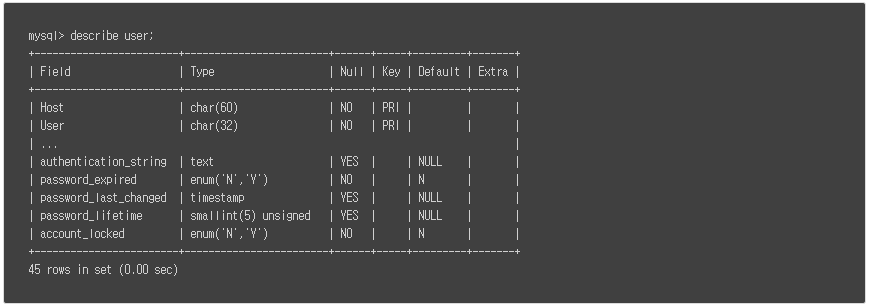 password field 를 찾을 수 없었다. 대신 authentication_string 이라는 field가 존재한다.