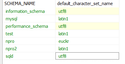 //자신에 디비가 어떤 character을 가지고 있는지 볼수 있다