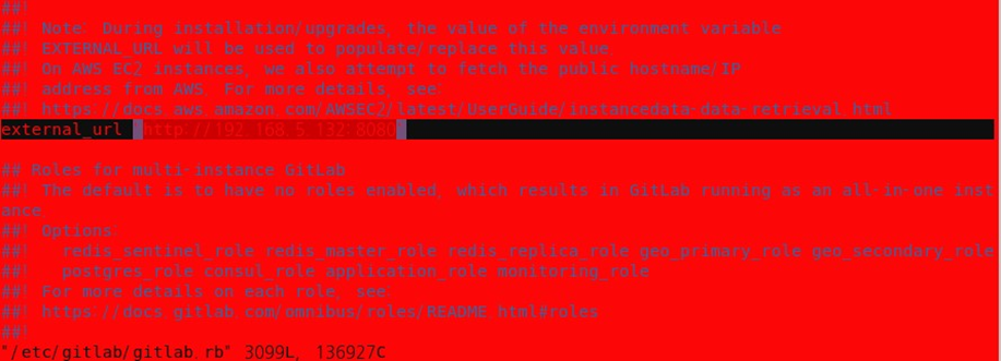구성 파일의 상단 근처에 external_url 로 시작하는 줄이 표시됩니다. 도메인/하위 도메인 또는 IP 주소와 일치하도록 값을 변경합니다.