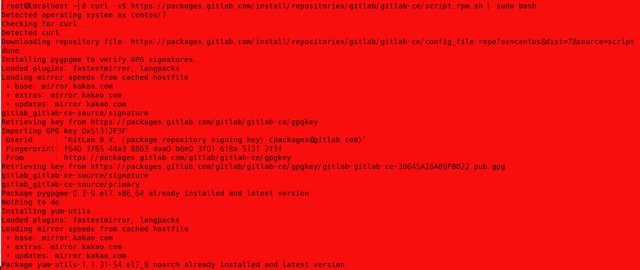 yum 패키지 관리자를 사용하여 GitLab CE 패키지를 설치한다.