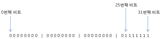 시작값은 128, 끝값은 128 + (25번째비트부터 31번째비트까지 1로 on 된 10진수값 => 127) = 255