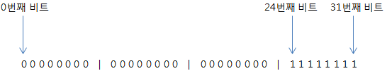 시작값은 0, 끝값은 0 + (24번째비트부터 31번째비트까지 1로 on 된 10진수값 => 255) = 255
