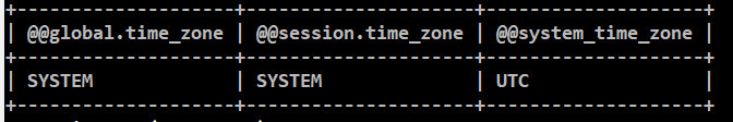 select @@global.time_zone, @@session.time_zone,@@system_time_zone;