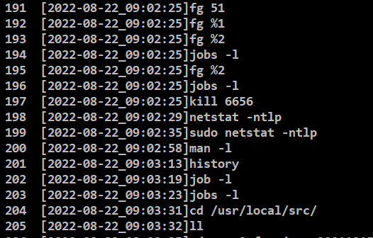 자신이 사용한 명령어를 확인 은 할 수 있지만 일자가 안떠서 매우 불편하다
