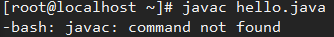 그리고 컴파일 하기 위해 javac 를 명령 해야 하는데, javac를 명령해보면 명령어를 알 수 없다고 합니다.