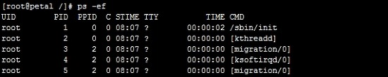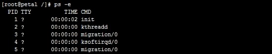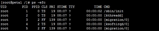 ps -e 의 경우 입니다. 모든 프로세스를 보여 줍니다.