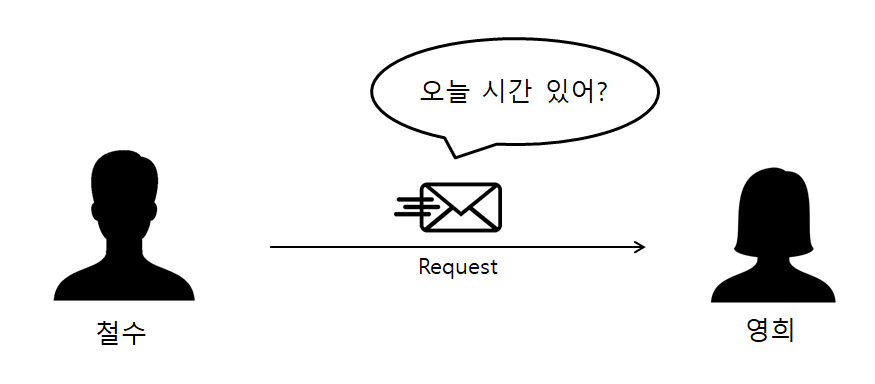 철수와 영희 그림에서 보듯이 철수는 영희에게 데이트 요청(request) 메세지를 보냈고