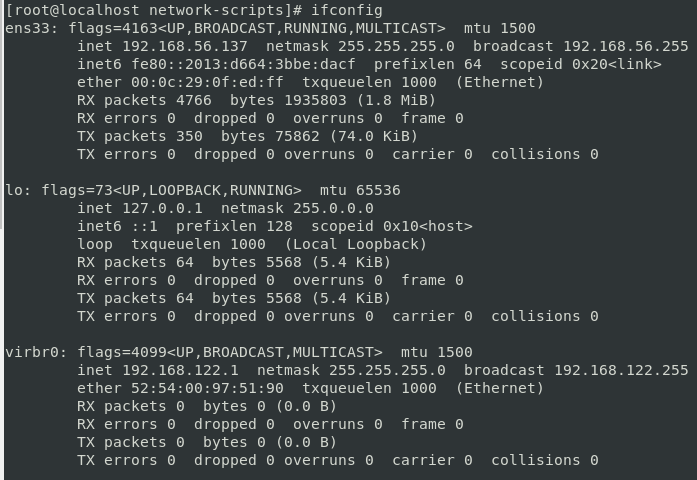 [root@localhost sysconfig]# cd /etc/sysconfig/network-scripts/