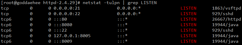 | # cd /tmp/lib # wget http://mirror.apache-kr.org//httpd/httpd-2.4.29.tar.gz |